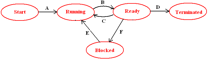 Que 1-  Consider a system which is having n CPU processors then , what is the minimum and maximum no. of process that may present in ready, running and block state? Ans- que Que 2- In the following process state  transition diagram for a uniprocesssor system, assume that there are always some processes in the ready state. que2 Now consider the following statements: