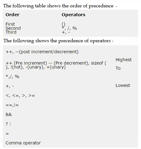 Precedence of Operators –